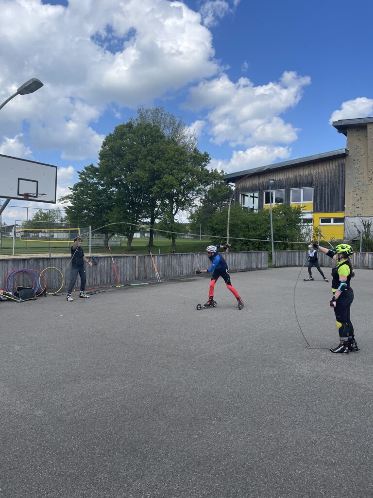 Der traditionelle Abschluss der Lehrgangssaison 2022/23 fand Anfang Mai mit dem Inline-/Rollskilehrgang in Wildpoldsried statt. Insgesamt waren 7 Teilnehmer „am Start“ die den Lehrgang als Abschluss, Start ihrer C-Trainer Ausbildung oder auch als Fortbildung zur Lizenzverlängerung nutzten. Die Bedingungen auf dem Sportgelände in und um die Sporthalle des SSV Wildpoldsried waren wieder perfekt. Für die Theorieinhalte stand die Cafeteria der Sporthalle zur Verfügung, die Praxisinhalte konnten auf dem Hockeyplatz, der Eisstockweitschussbahn und dem Sportplatz ideal vermittelt werden. Für die Rollskieinheit standen Radwege und abgelegene Nebenstrassen zur Verfügung. Auch das Wetter unterstütze den Lehrgang mit viel Sonnenschein und angenehmen Temperaturen. Welch ein Kontrast zu den vergangenen Winterlehrgängen wo viel schlechtes Wetter und Regen die Lehrgangstage sehr lang und mühsam machte.